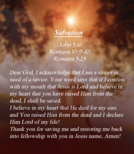 Out of God’s great love for humanity, He has made Salvation available to everyone who believes in Jesus. John 3:16 states, “For God so loved the world that He gave His only begotten Son, that whoever believes in Him should not perish but have everlasting life.”